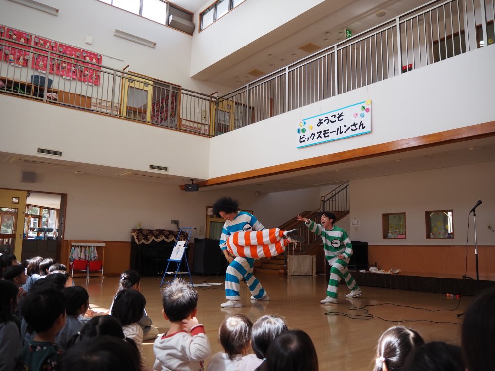 でも、まだまだたくさん楽しい時間を一緒に過ごしたい!!一日保育士で遊びに来てくれてすごく仲良しになれたビックスモールンさんがお楽しみ会にも来てくださいました。